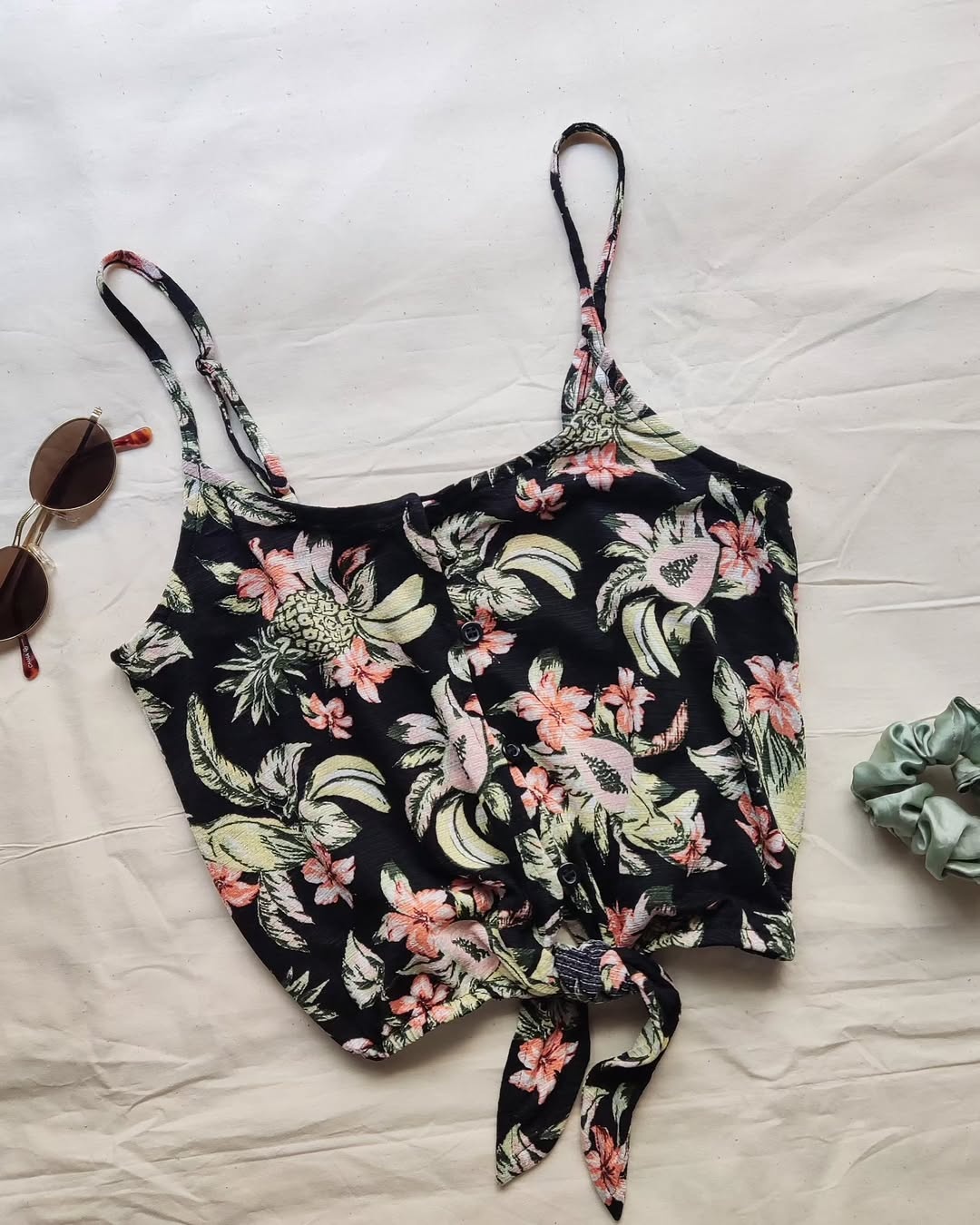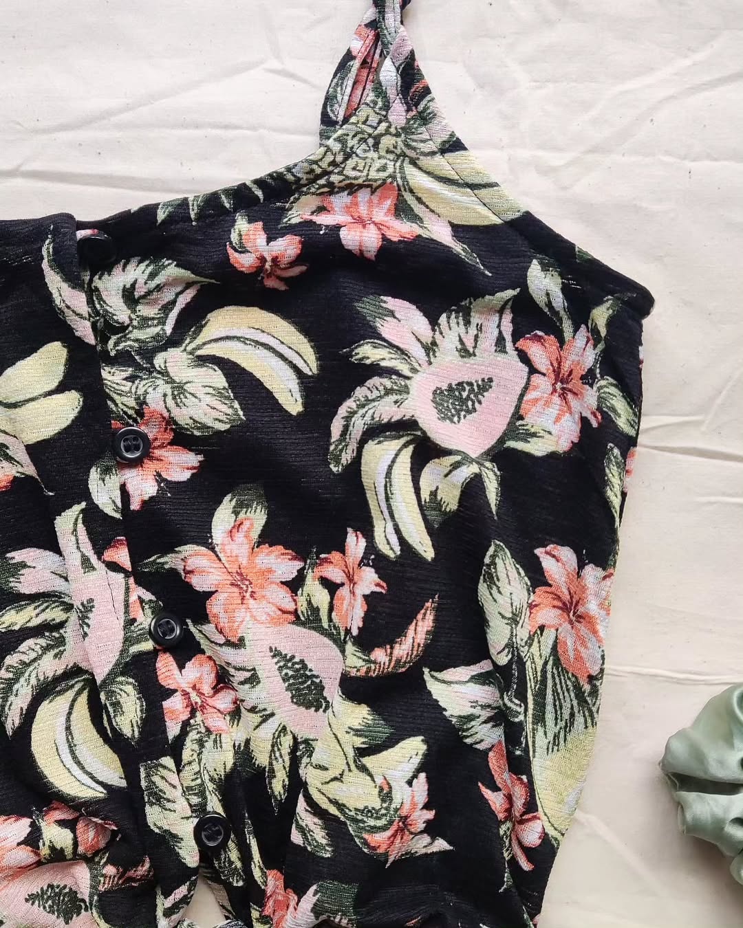 Black Floral Tie Up Top