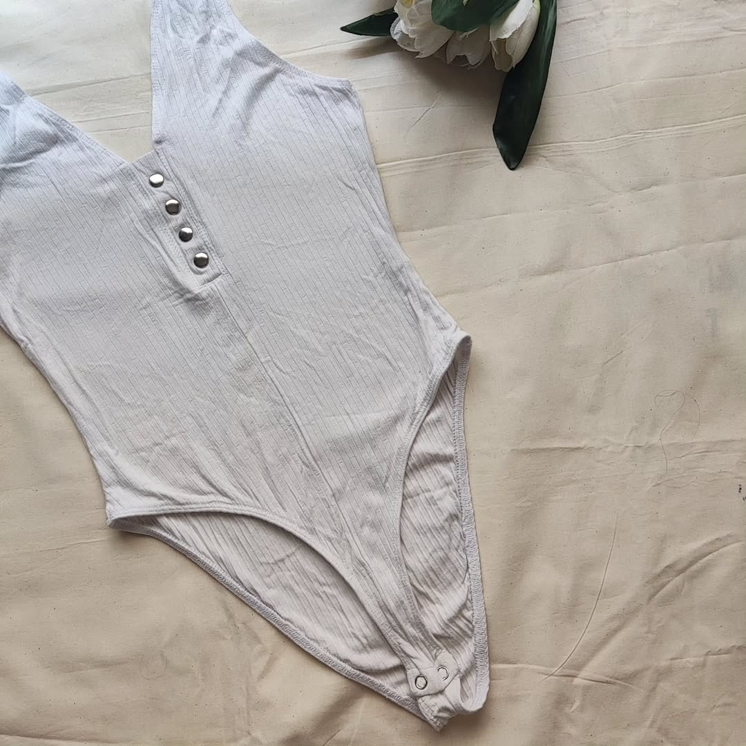Deep White V Neck Bodysuit